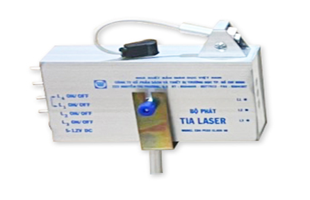 - Bộ gồm 4 đèn laser tạo các chùm tia song song và đồng phẳng, một chùm tia có thể thay đổi độ nghiêng mà vẫn đồng phẳng với các chùm tia còn lại; điện áp hoạt động 6 V một chiều; kích thước điểm sáng từ 1,2 mm đến 1,5 mm; có công tắc tắt mở cho từng đèn. Đèn đảm bảo an toàn với thời gian thực hành;