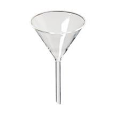 Phễu lọc thủy tinh cuống dài: Thủy tinh trung tính, chịu nhiệt, kích thước Φ80mm, dài 130mm (trong đó đường kính cuống Φ10, chiều dài 70mm).